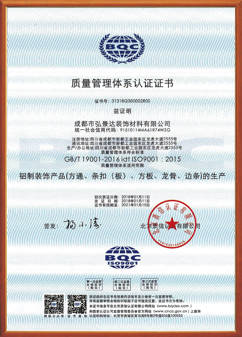 The company has a scientific management system, research and development system and testing system as well as a sound sales service system. All along, the company has always adhered to the principle of facing the public, serving the society, quality first, adhering to the business philosophy of "integrity first, cooperation and win-win", and has been widely praised by the industry, and gradually become the vanguard of the Chinese architectural decoration industry. Leader.