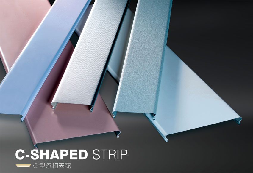 C-shaped strip ceiling made of import special paint carrier and aluminum alloy which is easy to maintain and able to combine leveling airtight structure, easy to clean, It could be aleatoric combined, so that it can offer more design ideas for modern building.