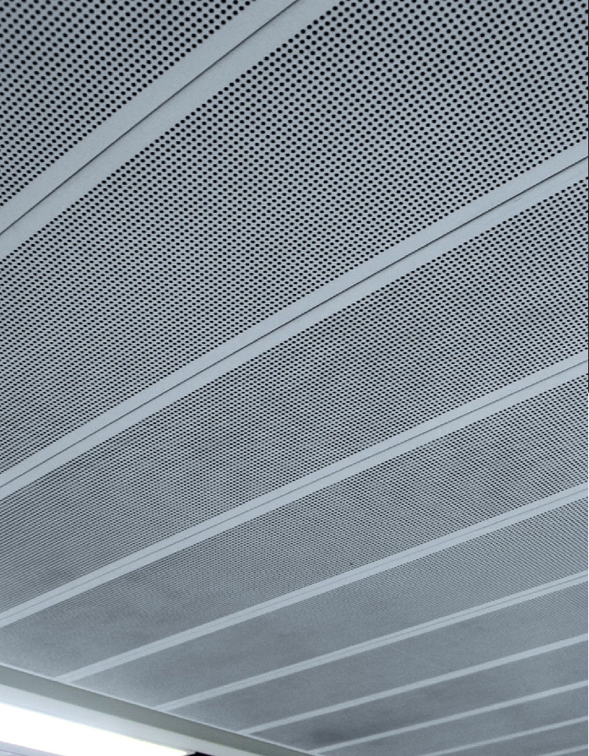 每塊板兩端可折邊,板與板兩端連接不需要任何裝飾便能很好地密拼在一起,同時(shí)可嵌入暗骨式條形方板做裝飾,解決了傳統(tǒng)條扣兩端不能折邊、連接收口裝飾難的問(wèn)題。
